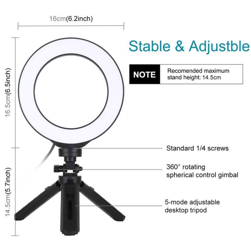 6.2" Dimmable LED Ring Light with Tripod Stand Vlogging Video Ring Light Photography Kit PKT3059B