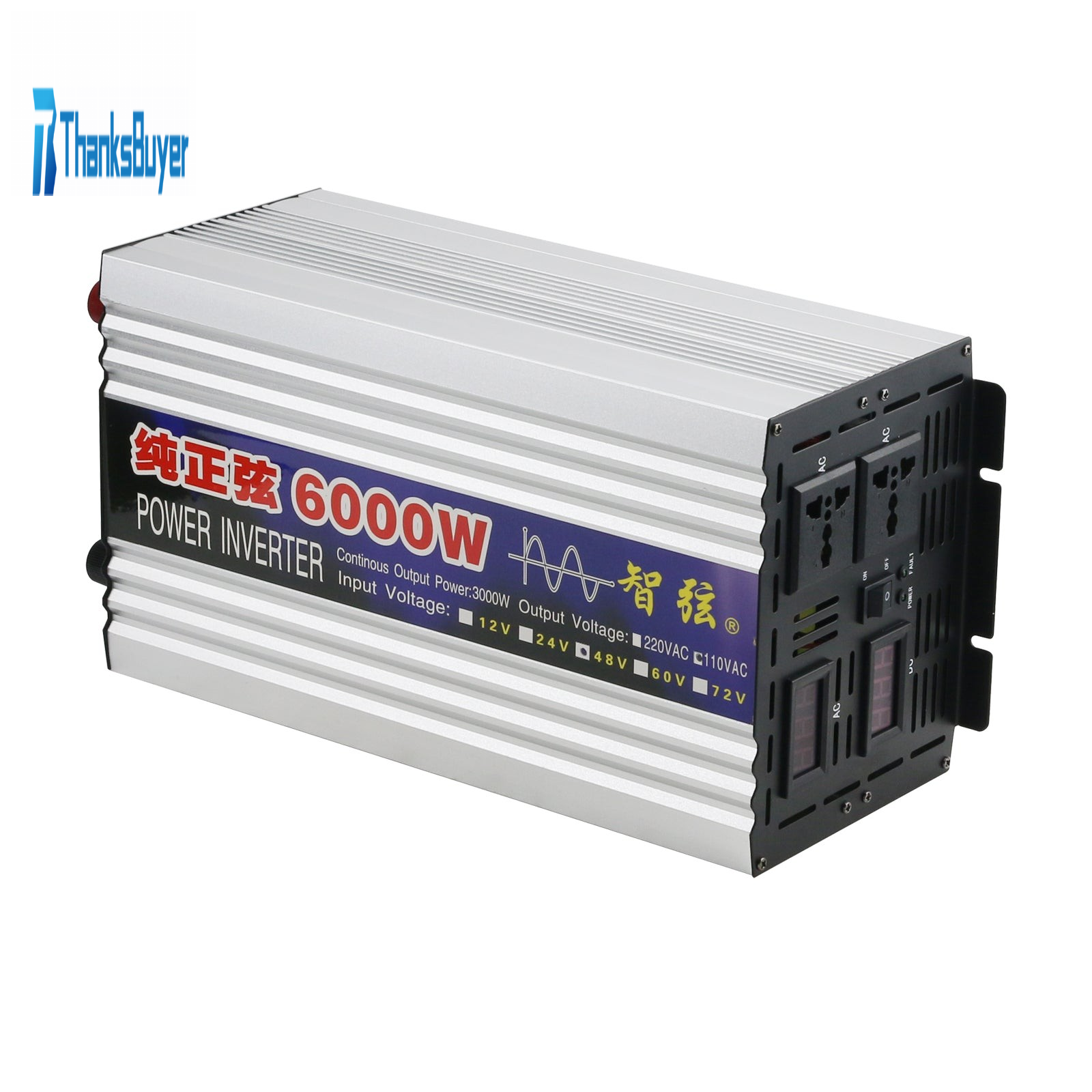 6000W Pure Sine Wave Power Inverter Input 48V Output 110V for Home Appliances Solar Power System