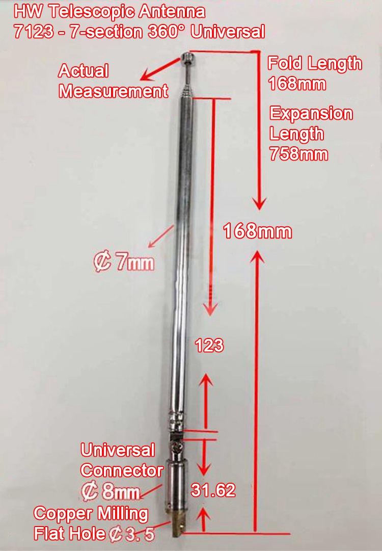 7123 Telescopic Antenna 7-section 360-degree Rotary Connector 168mm-758mm Antenna for Radio Stations