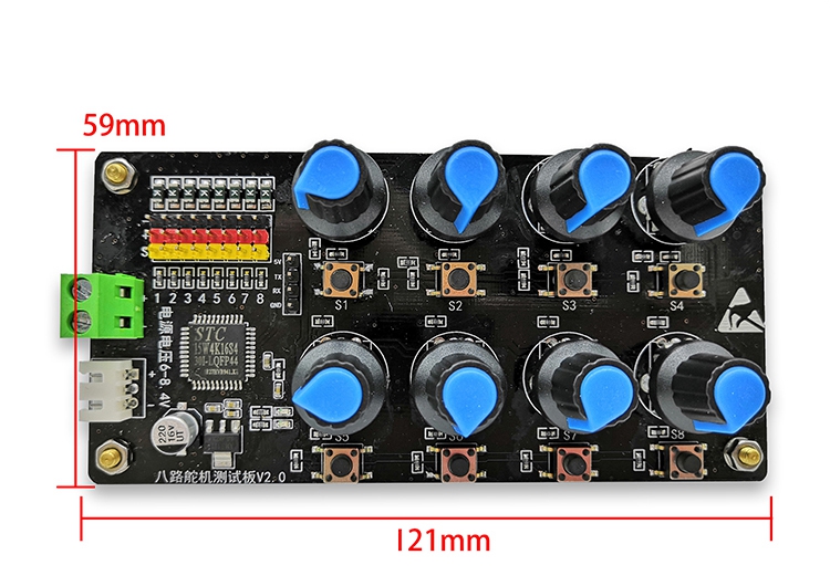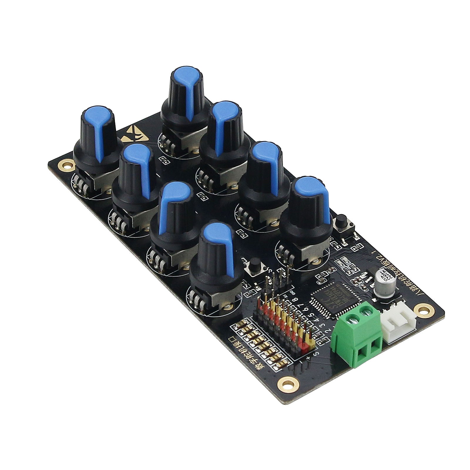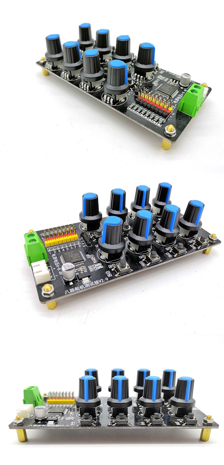 - 8 Potentiometer Knobs: The faster the speed, the larger the angles.
