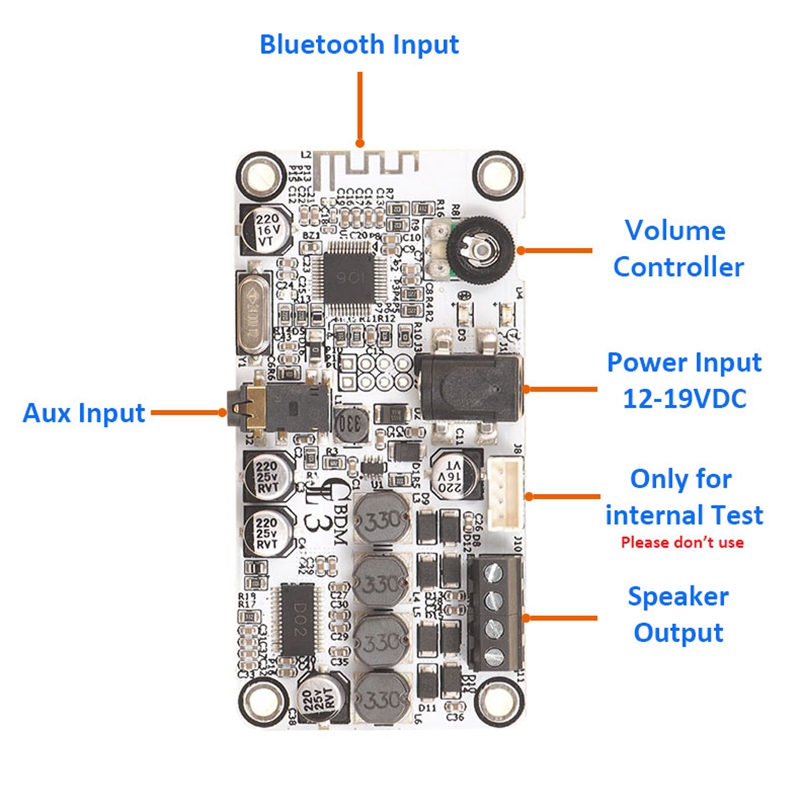 AA-AB32477 Dual Channel 20W + 20W HIFI Bluetooth 5.0 Power Amplifier Board Bluetooth and AUX Input 12-19VDC