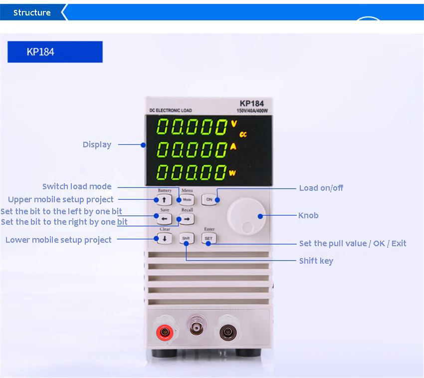 - The KP180 series has four basic load modes: CC, CV, CW, and CR, with high accuracy and good stability.