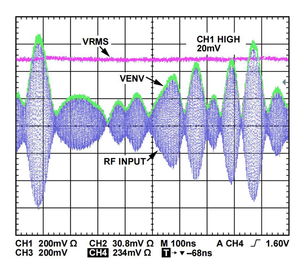 - Envelope tracking RF detector, output voltage proportional to input voltage