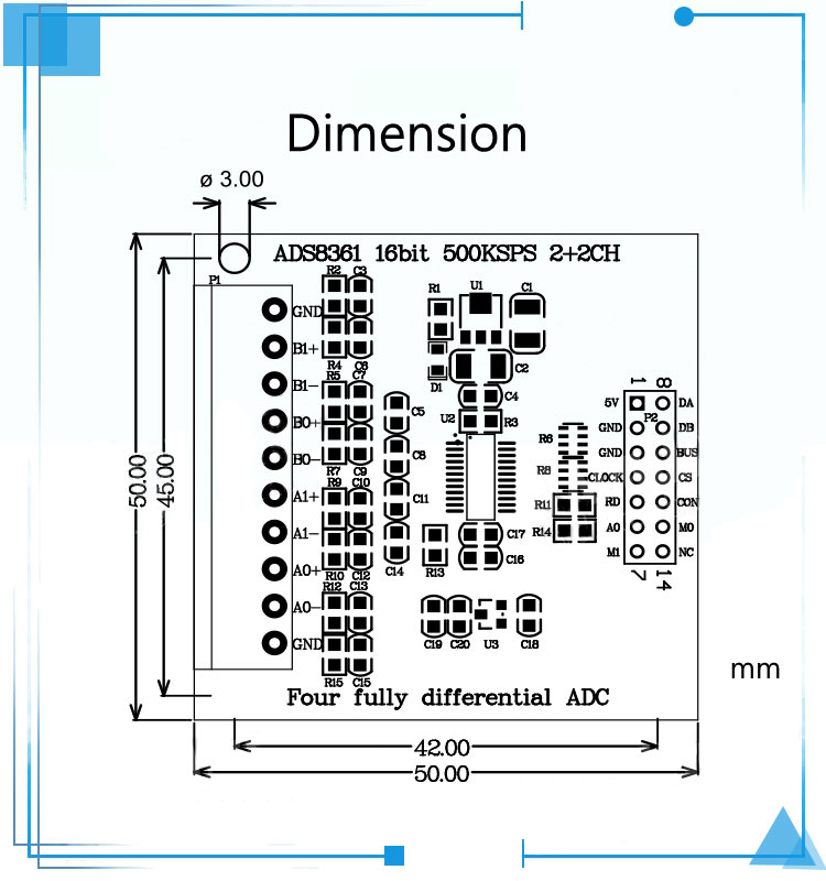 ADS8361 Data Acquisition Module 16 Bits Four Fully Differential ADC 500KSPS 4 Channel 5V
