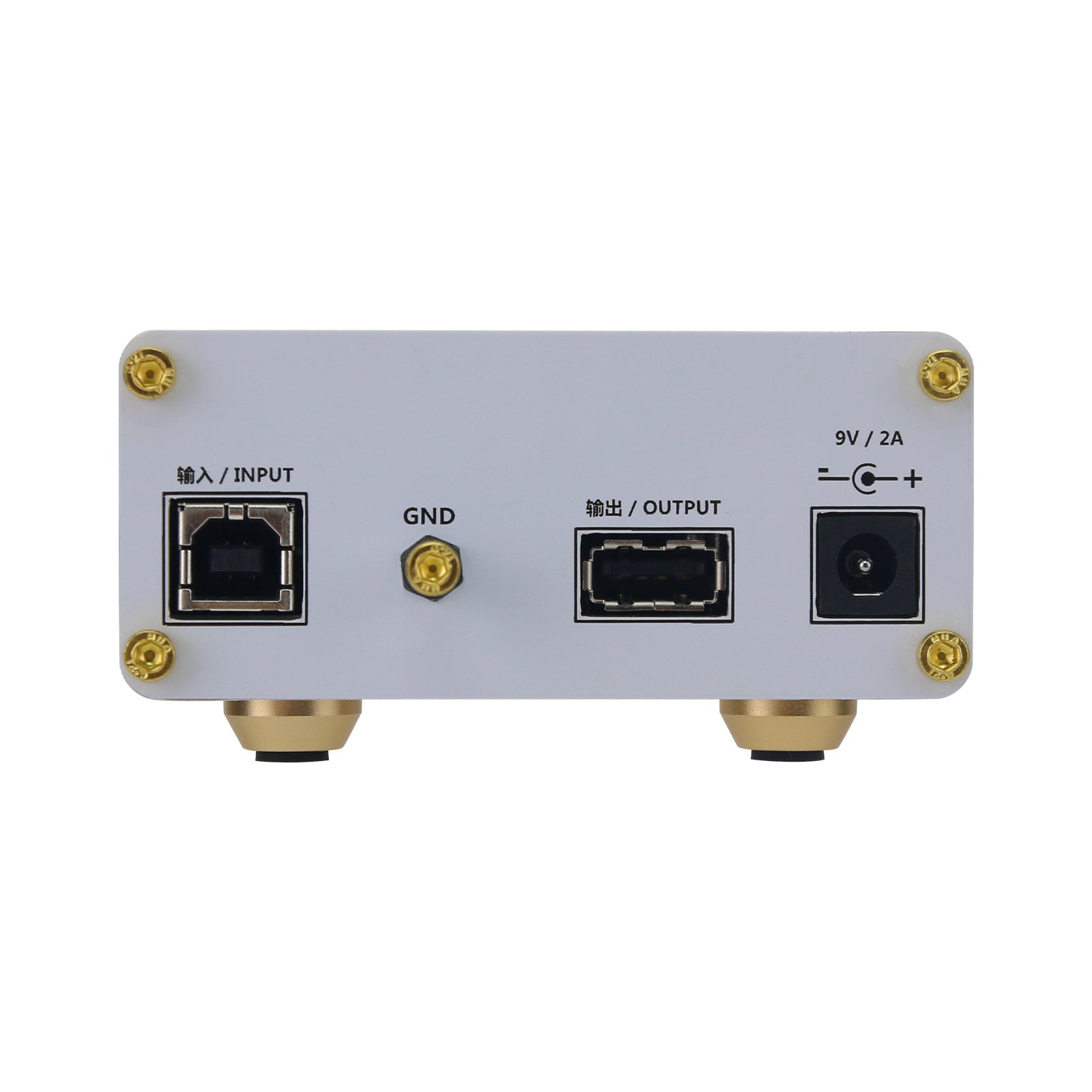 This is an upgraded version of the original ADUM4166 USB isolator. It uses the small package ADUM3166 instead. The OCXO and top frequency synthesizer chip SI5341 are upgraded for use with the isolator chip and data reorganizer. The whole machine uses solid polymer capacitors and ultra-low noise fast feedback regulators.