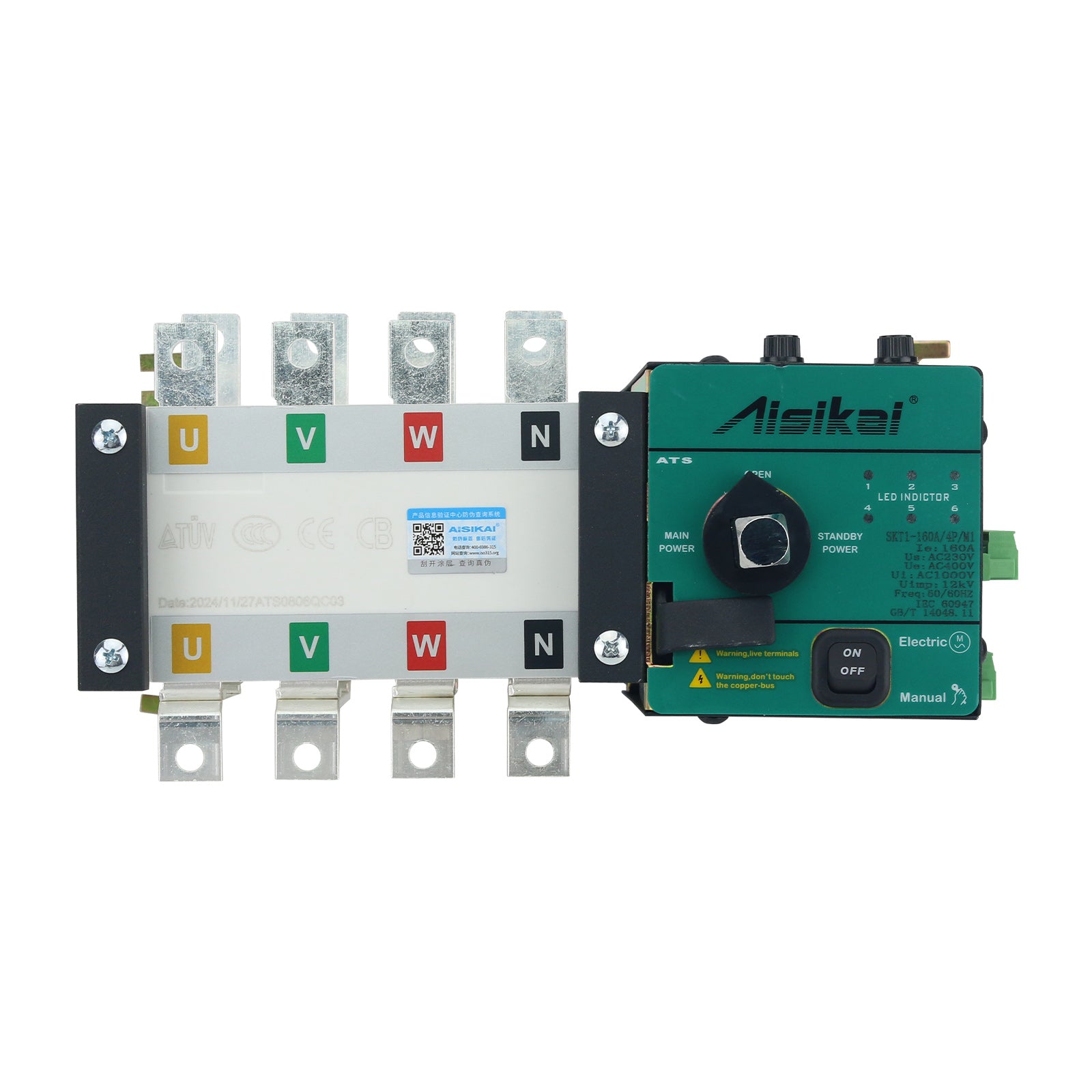 AISIKAI SKT1-160A Dual Power Automatic Transfer Switch SKT1-160/4P for Main & Standby Power Sources