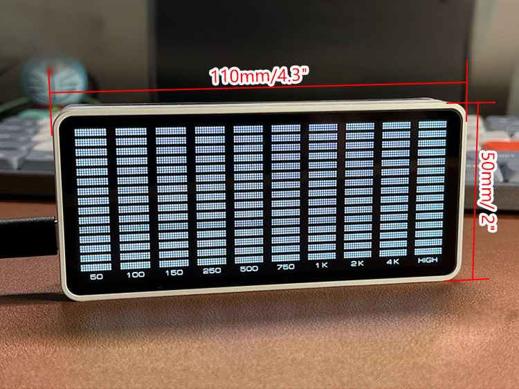 - Custom frequency band display ensures that even 10 bands can fully display the audio frequency range (20Hz-20KHz).