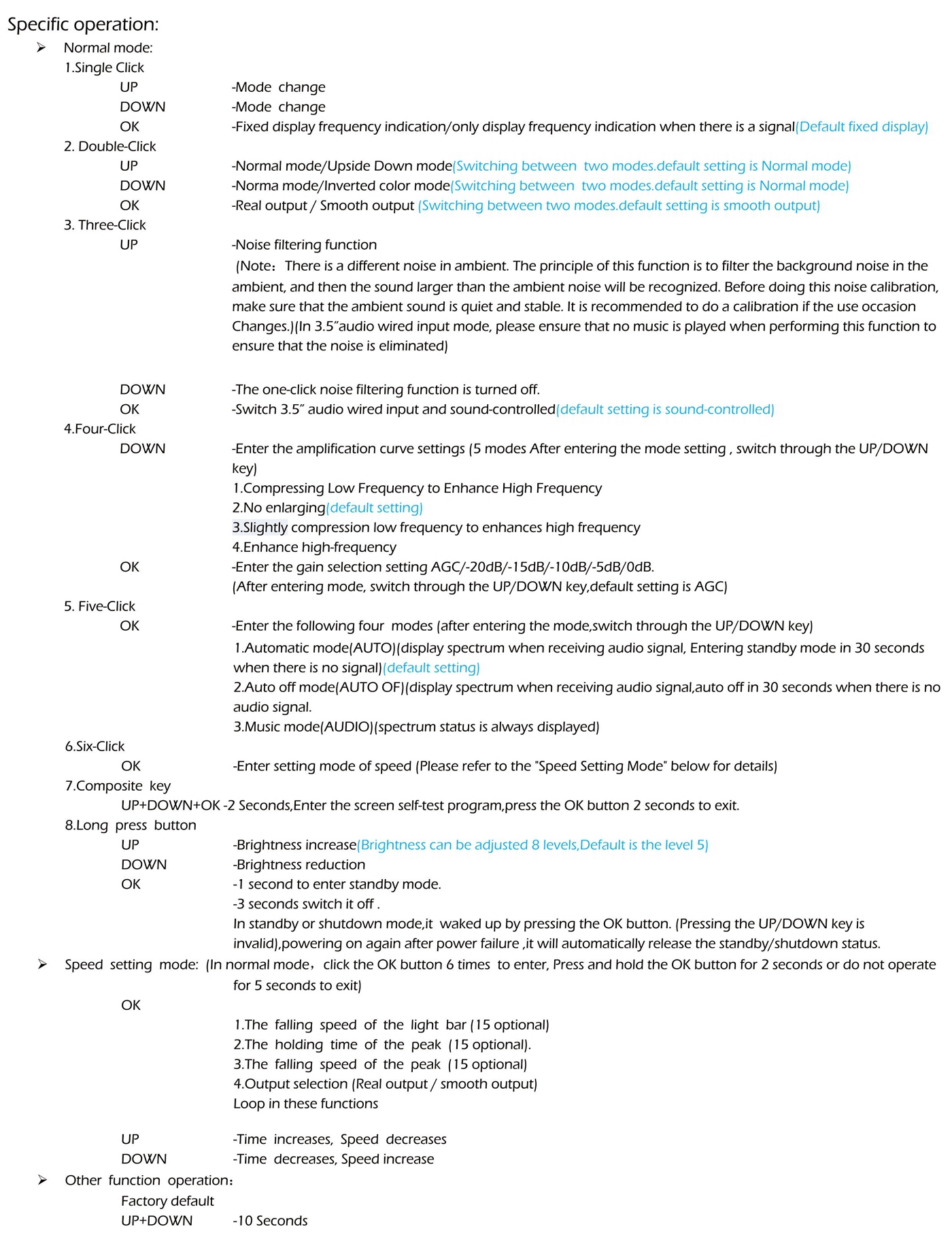 - The falling speed of the light bar, the holding time and the falling speed of the peak can be adjusted separately.