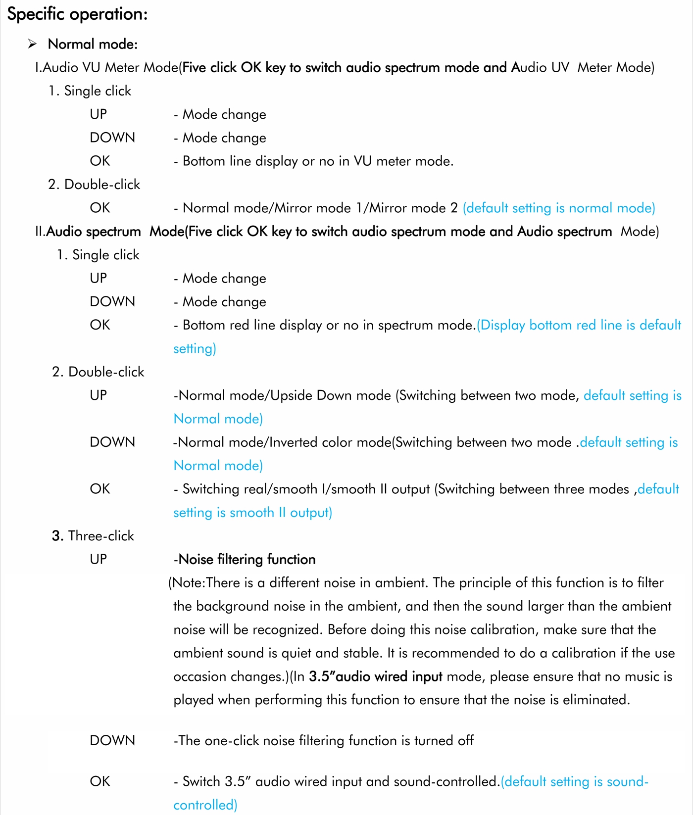 - Level light mode: It supports stereo level light display when signals are input via an audio cable.