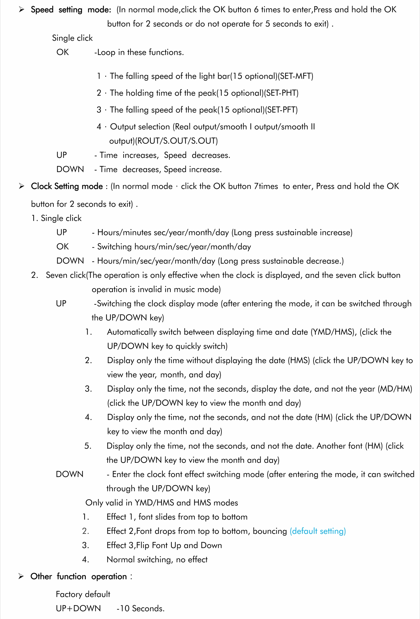 - The falling speed of the light bar, the holding time and the falling speed of the peak can be adjusted separately