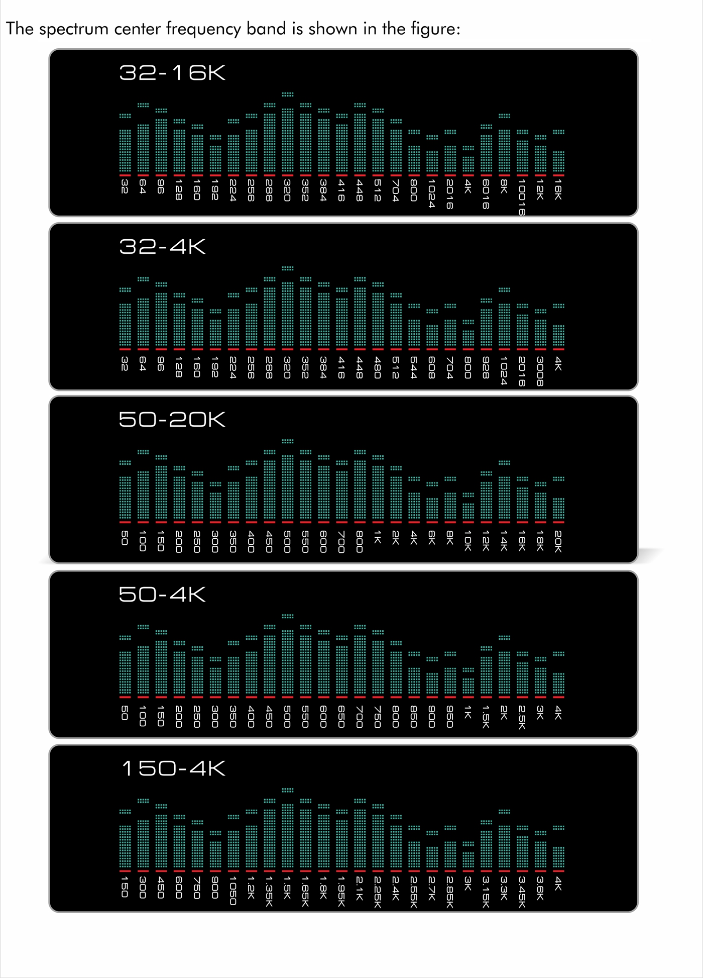 - Custom frequency band display to ensure that even the 25 segments can fully display the audio frequency range