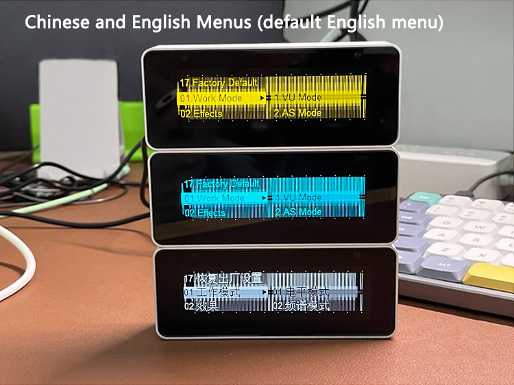 - Menu is displayed in Chinese and English. There is English menu by default.