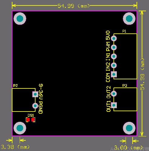 The size of the drive module is 5.5x5.5cm/2.2x2.2", and the height is 2.0cm/0.8". The diameter of the mounting hole is 3mm/0.12", and it is recommended to use M3 screws for fixing. Please be careful not to short-circuit the back components during installation. It is recommended to use a 1mm/0.04" thick thermally conductive silicone pad on the back of the module, and then use a 5mm/0.2" high copper pillar to fix the module.