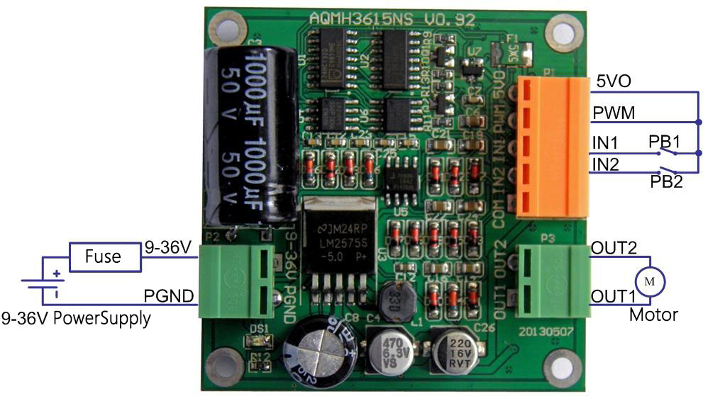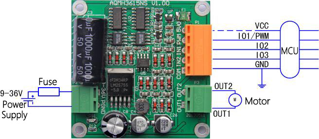 AQMH3615NS DC Motor Driver Board Module High-Power 12/24/36V 15A 360W Forward Reverse Rotation
