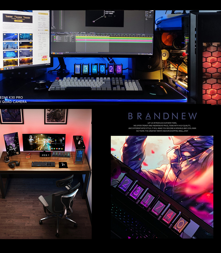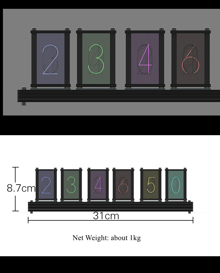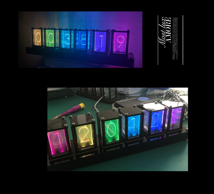 Assembled Pseudo Glow Tube Clock RGB Electronic Clock Creative Birthday Gift Desktop Decoration