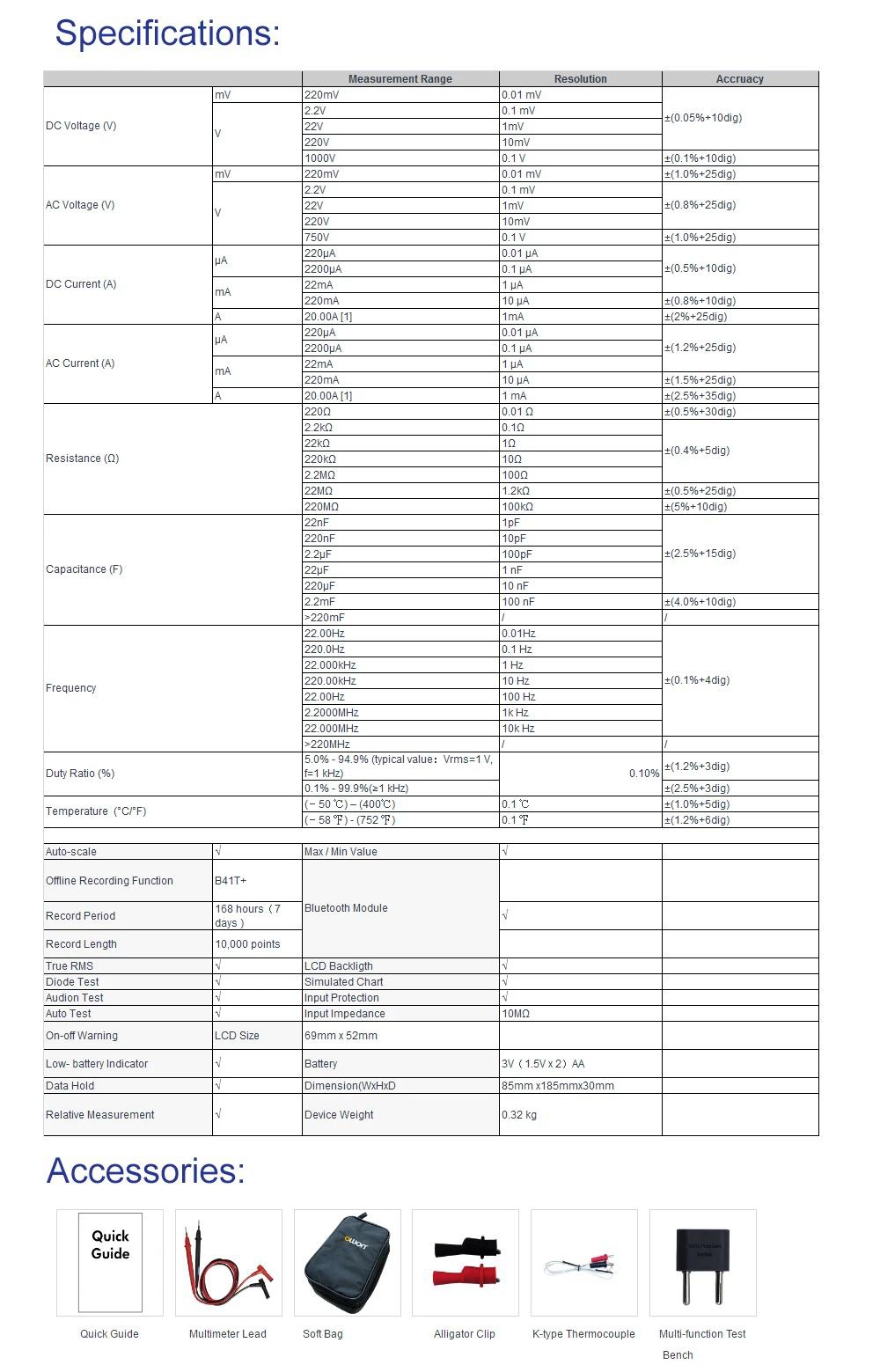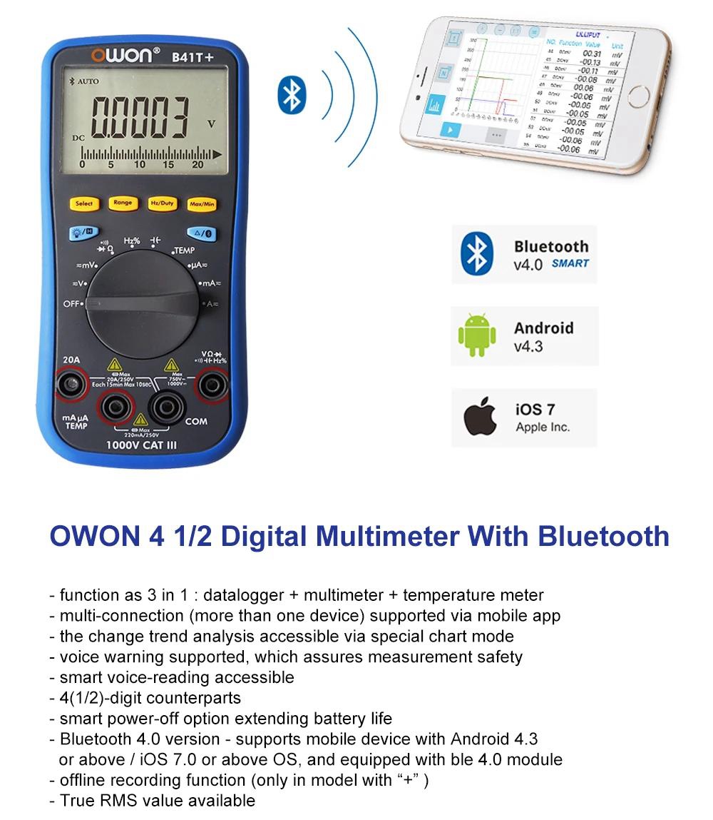 B41T+ 1/2 Digital Multimeter with Bluetooth Datalogger Temperature Meter 3-in-1 True RMS Multimeter for OWON