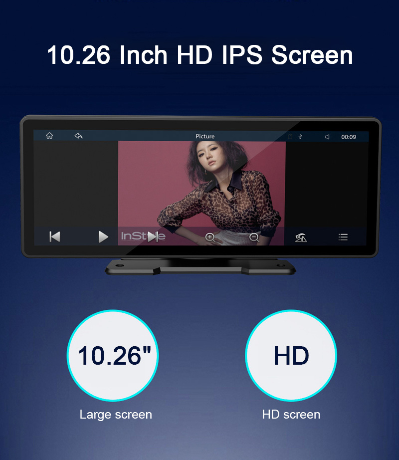 - 10.26 inch HD IPS screen with a resolution of 1600x600.