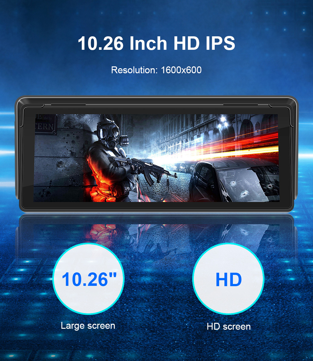 - 10.26 inch HD IPS screen with a resolution of 1600x600.