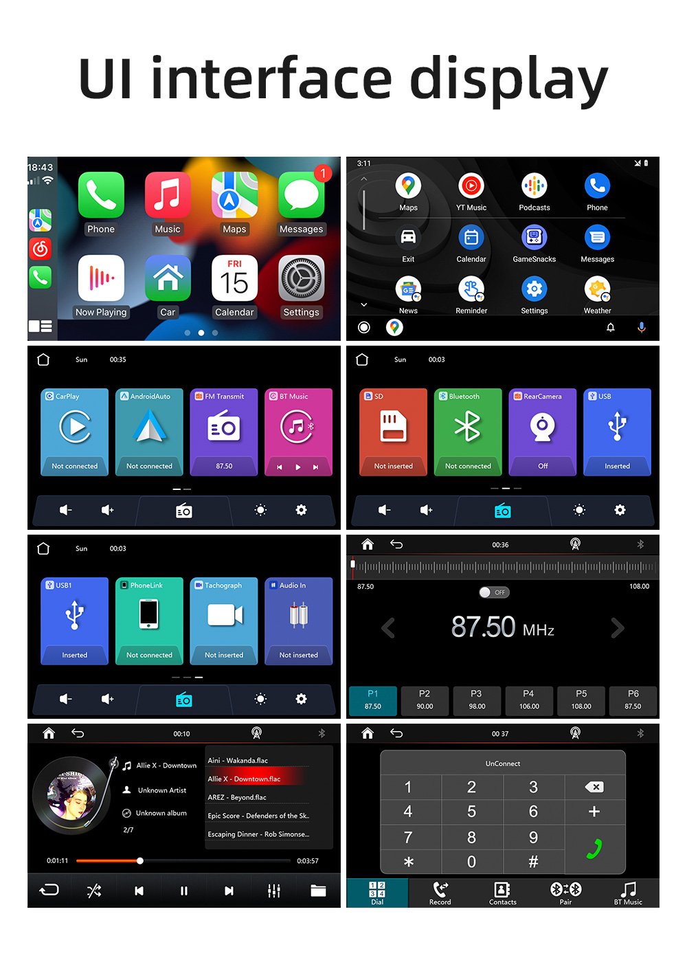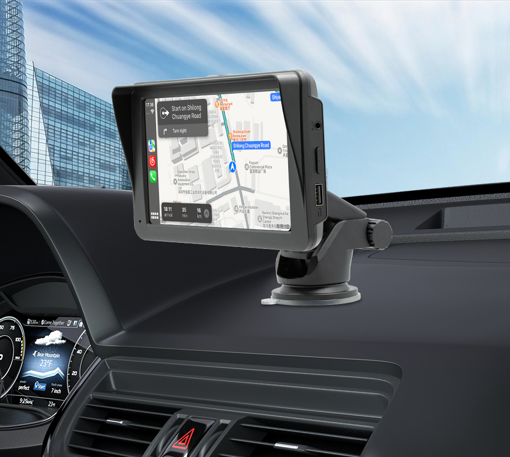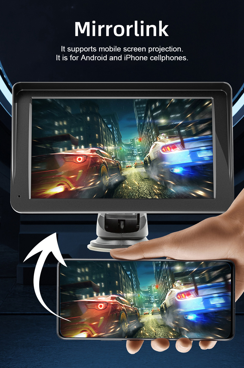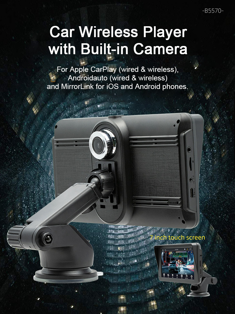 - The car player is deigned with a 7-inch touch screen and a dash camera on its rear side. For Apple CarPlay (wired & wireless), Androidauto (wired & wireless) and MirrorLink for iOS and Android phones.