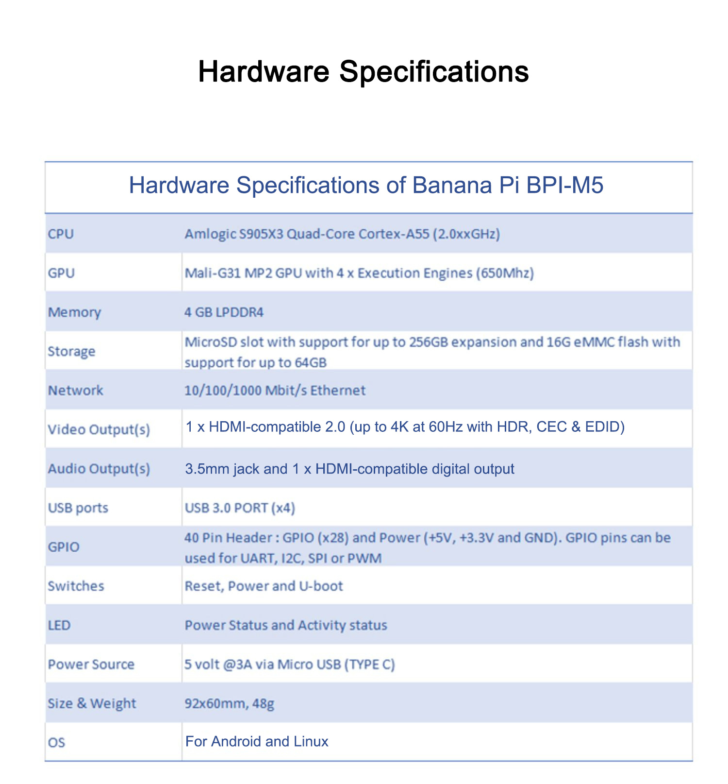 Banana Pi BPI-M5 Development Board Single Board Computer Quad-core S905X3 with 4GB LPDDR4 + 16G eMMC