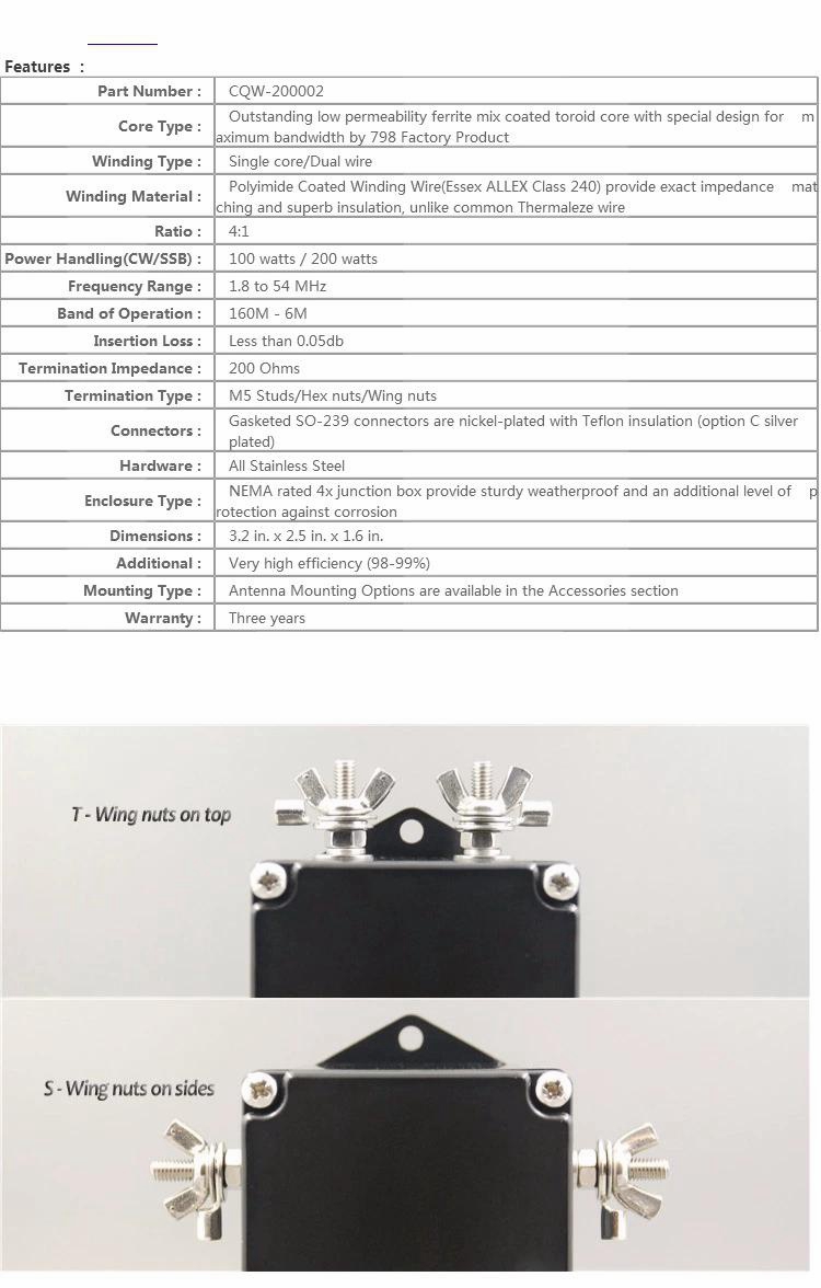 BASICQWW QRP Balun CWQ-200002S S-Wing 4:1 200W Current Balun Shortwave Antenna Balun 1.8-54MHz 200ohms