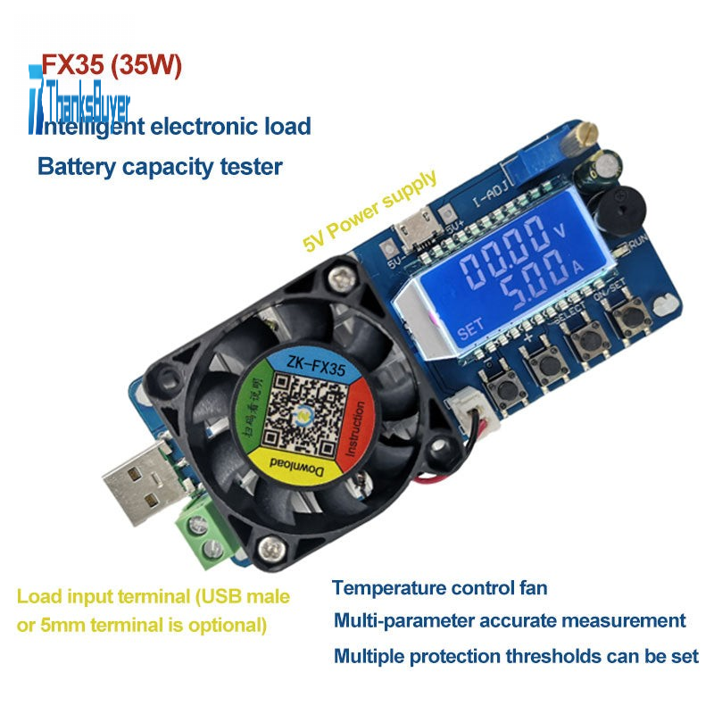 Battery Capacity Tester Constant Current Electronic Load USB Power Tester ZK-FX35 5A