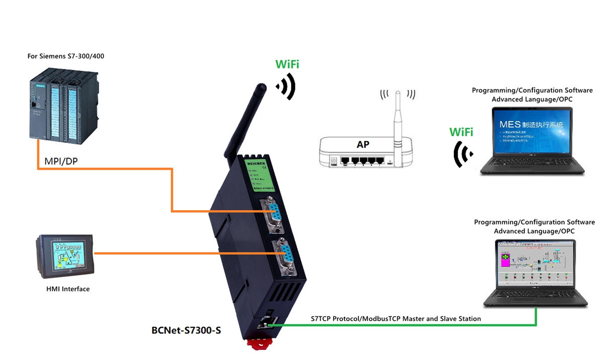 - BCNet-S7300-S is used for data acquisition of PLCs for Siemens S7-300/400/and for Siemens CNC 840D, 840DSL, etc., making it very convenient to build a production management system.
