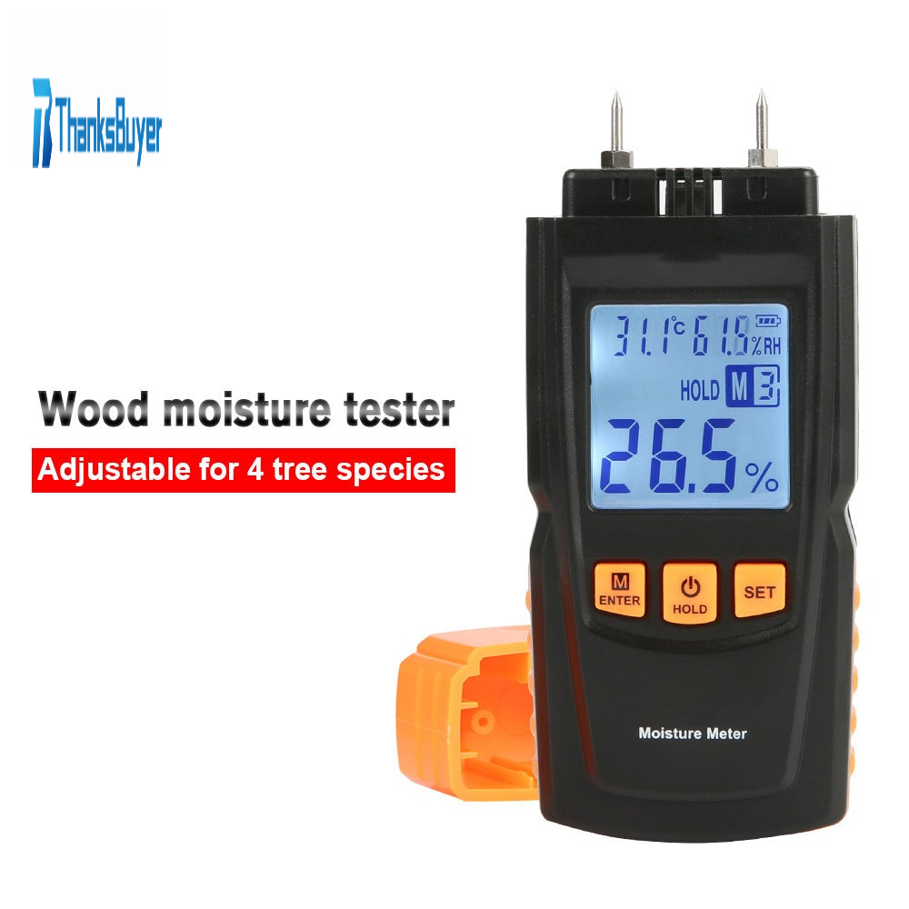 BENETECH GM610 Wood Moisture Meter Pins Humidity Tester Timber Damp Detector Digital LCD Display
