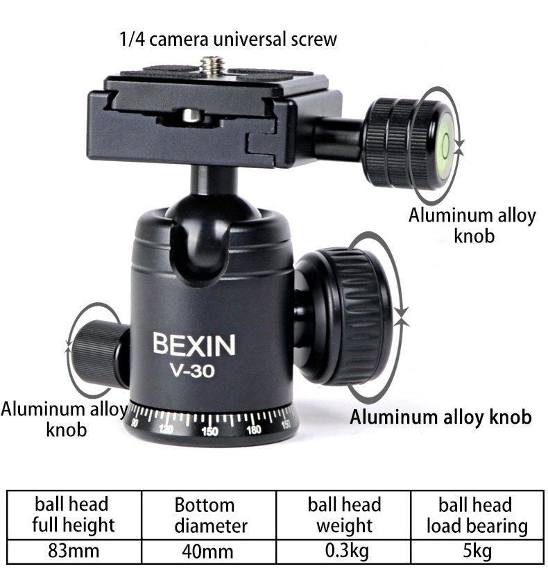 - Head: V-30 ball head