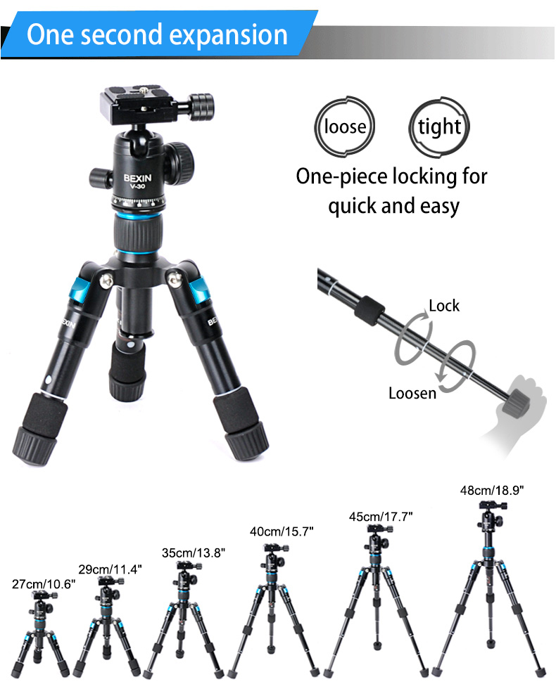 BEXIN MS08 18.9" Mini Tripod Table Top Tripod Photography Part for DSLR Camera Selfie Live Stream