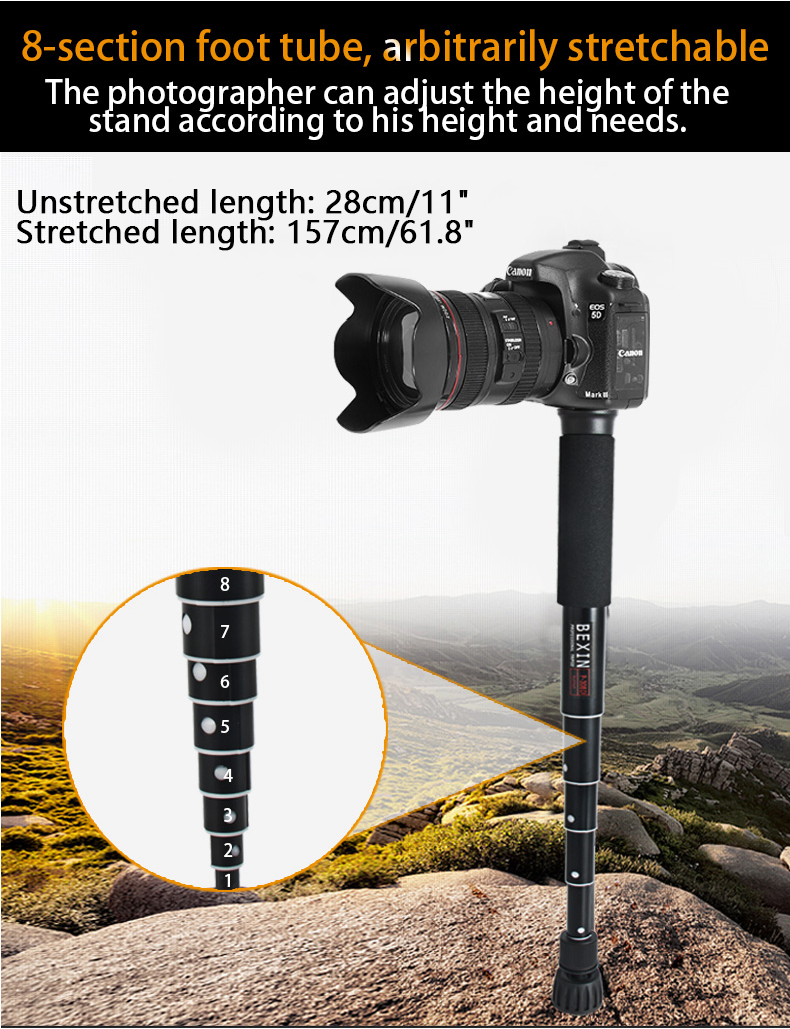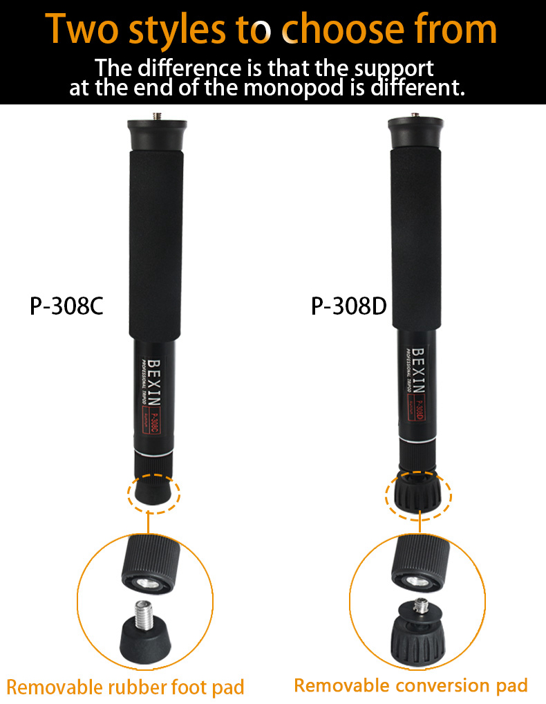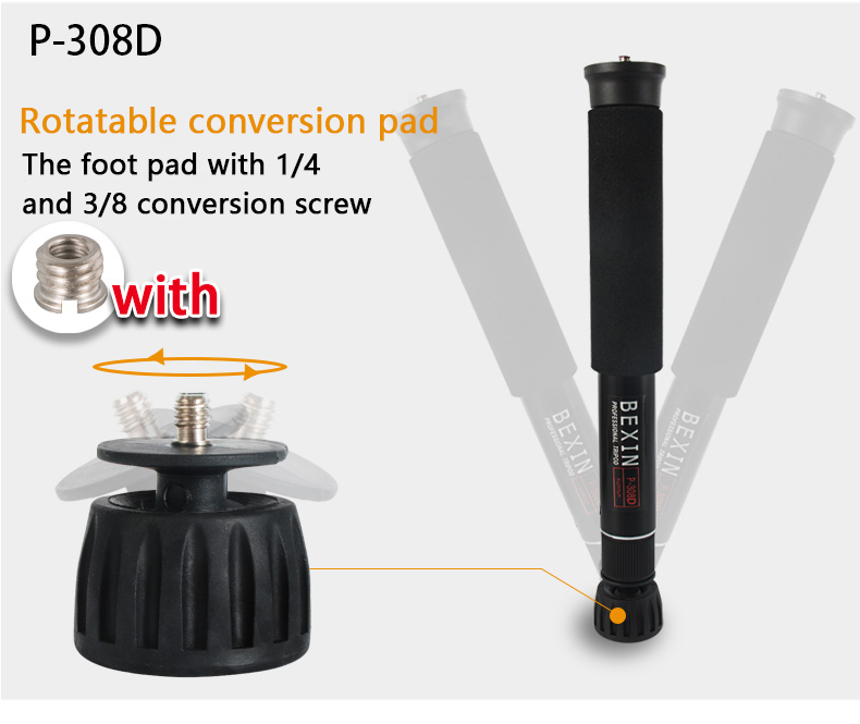 BEXIN P-308D 61.8" DSLR Monopod with Removable Conversion Foot Pad for Phone Live Stream Selfie