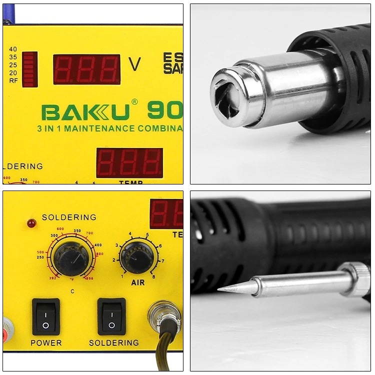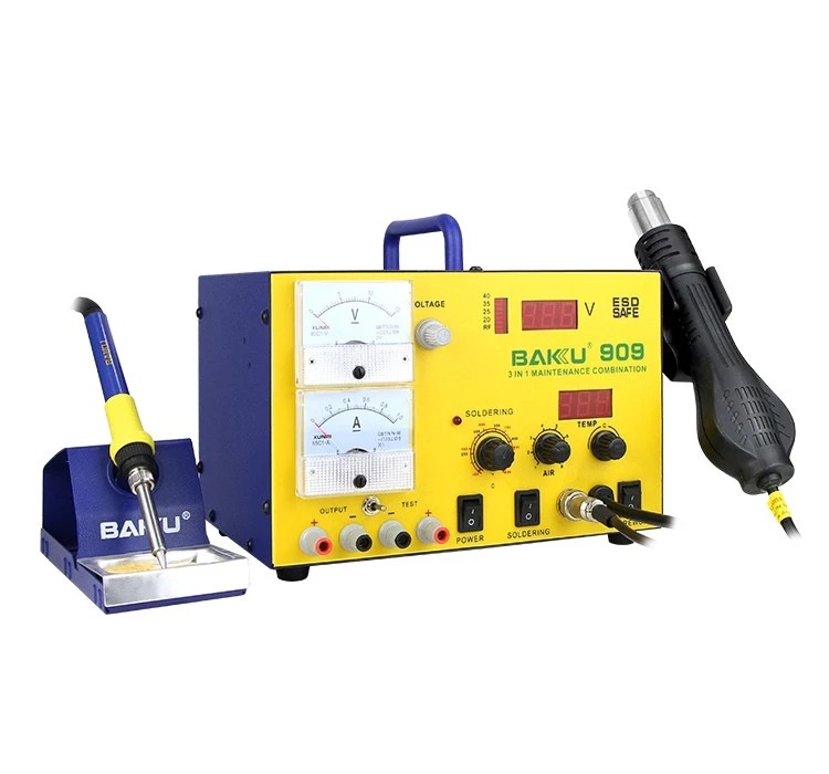 BK-909 3 In 1 Hot Air Gun Soldering Desoldering Station Soldering Iron BAKU 909 For Cellphone Repair