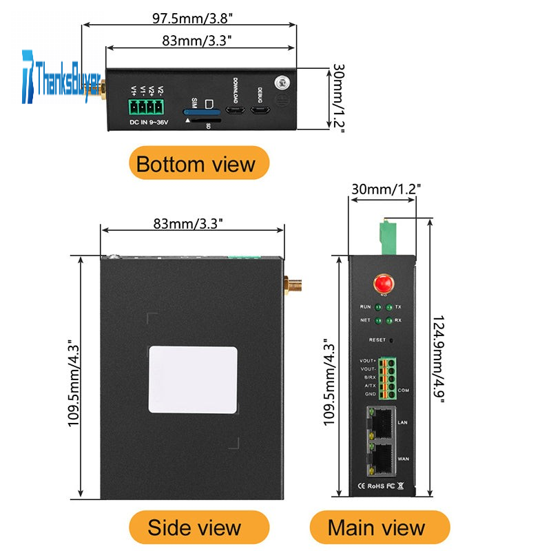 It's developed on embedded operation system for Linux with high stability. It is designed with various interfaces,1 RS485/RS232 (RS485 by default), 2 power supply inputs, 1 power supply output, 2 RJ45 Ethernet ports, 2 USB port, 1 SIM card slot, and 1 SD card slot. With Ethernet network, it features with high speed and low latency data transmission.