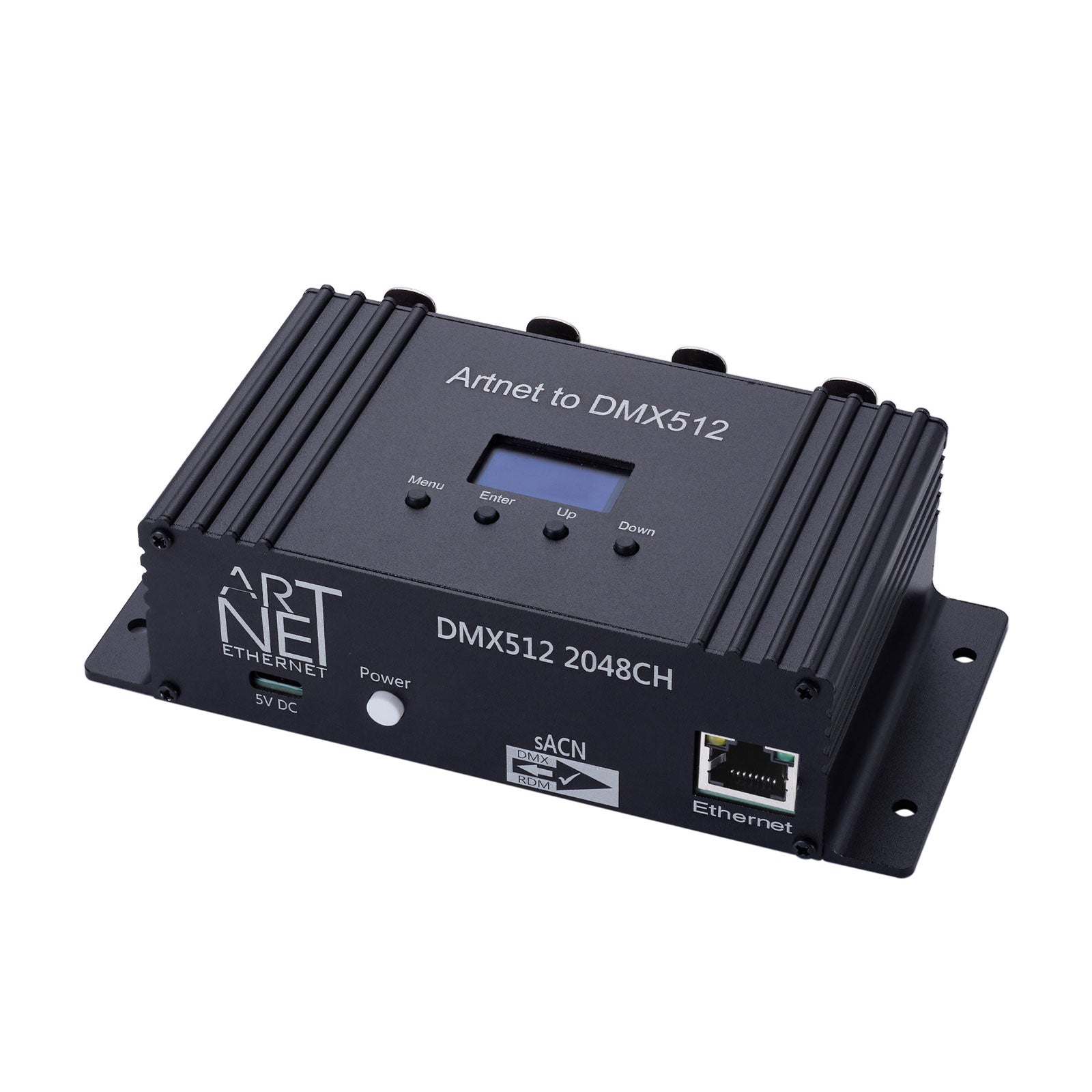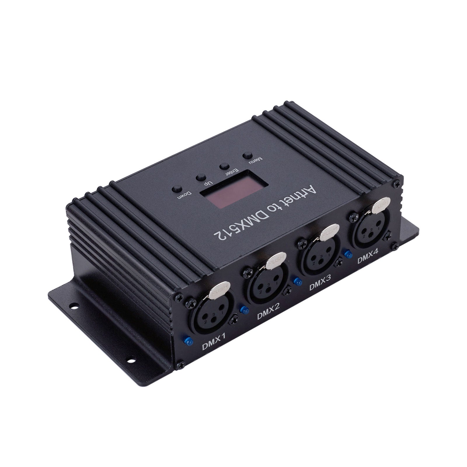 - Four DMX512 output ports (3-pin) with Art Net protocol, supports up to 2048 channels.