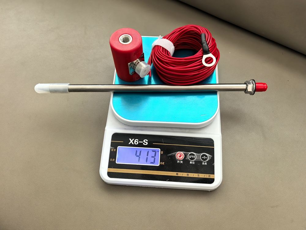 - Connect the M10 5.6-meter rod antenna to the ANT end, insert the GND end into the ground grid and twist the ground mount. After inserting it into the ground, lay the ground grid horizontally in all four directions. Use an M male feeder to connect the base and adjust the length of the telescopic rod according to the frequency band used. Please pay attention to the radio standing wave meter when using it (standing wave should be less than 1.8 as much as possible)