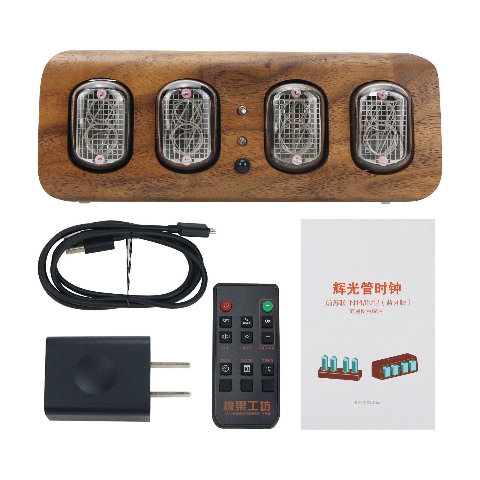 - 1 x Set of Glow Tube Clock (Walnut body)