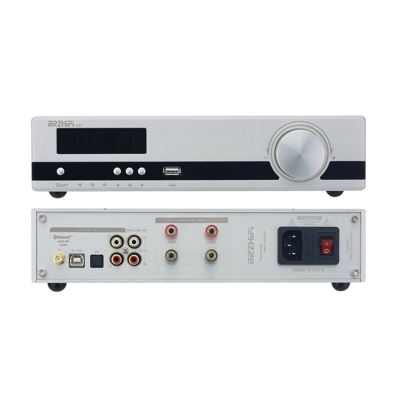 BRZHIFI Silvery X20 2.0Channel TPA3255 Dual Core HiFi Lossless Audio Power Amplifier Stereo 600Wx2 Output