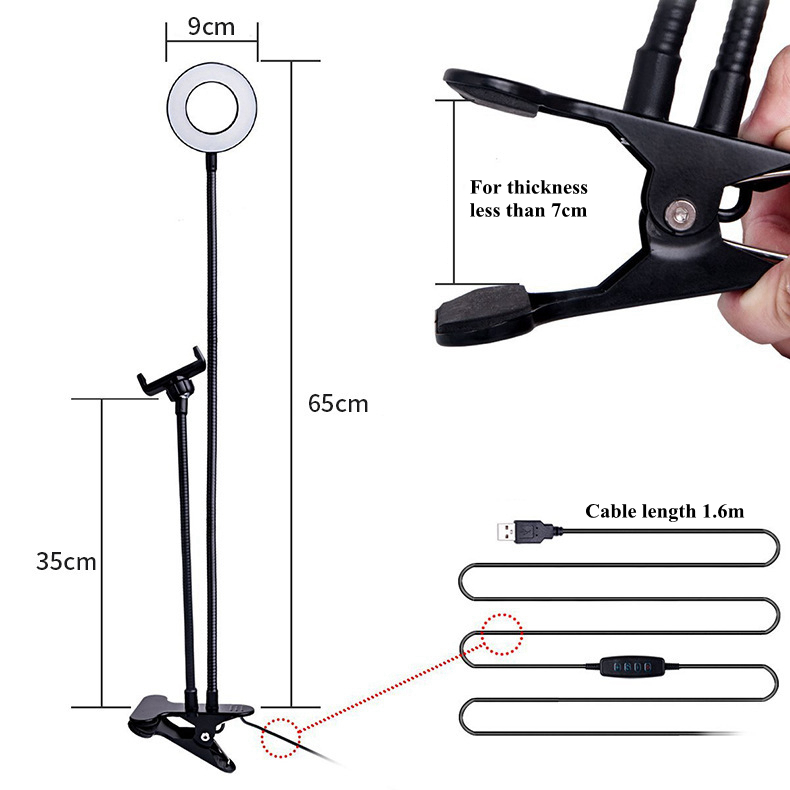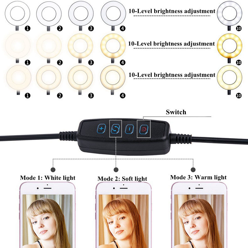 BX-06 Dimmable LED Ring Light Ring Fill Light with 360° Phone Clip For Live Streaming Selfie Vlog