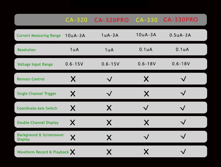 CA-320 Low Power Consumption Current Tester 10uA-3A 0.6-15V Dynamic Current Analyzer with 5-inch HD LCD