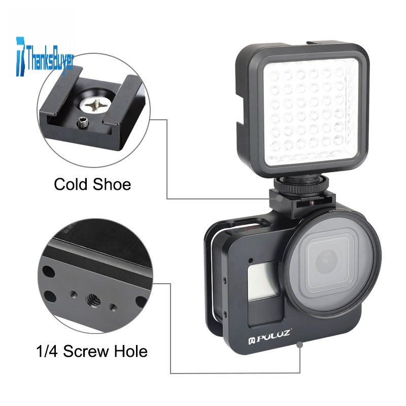 Camera Rig Camera Cage Housing Shell CNC Aluminum Alloy w/ 52mm UV Lens For GoPro HERO8 Black PU449B