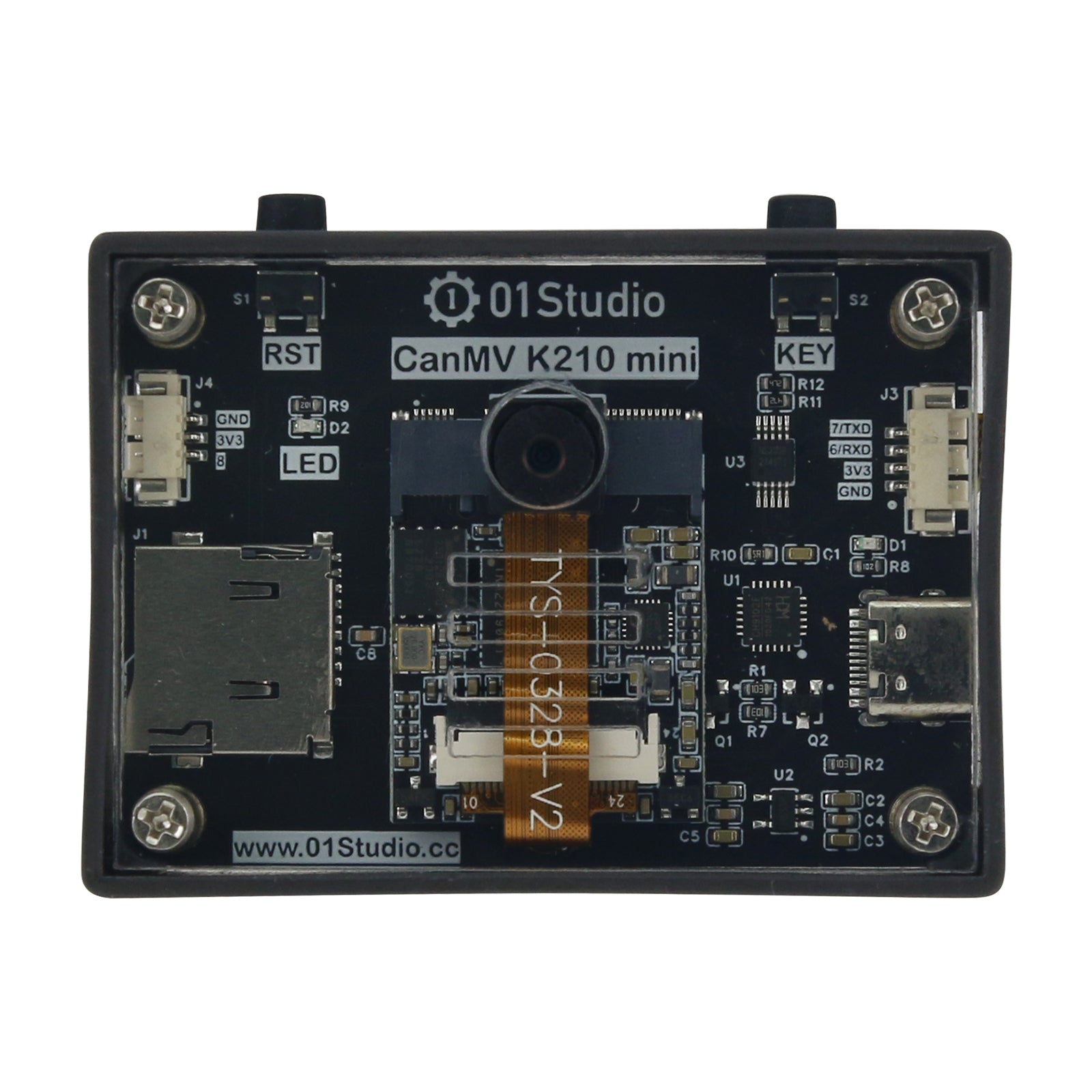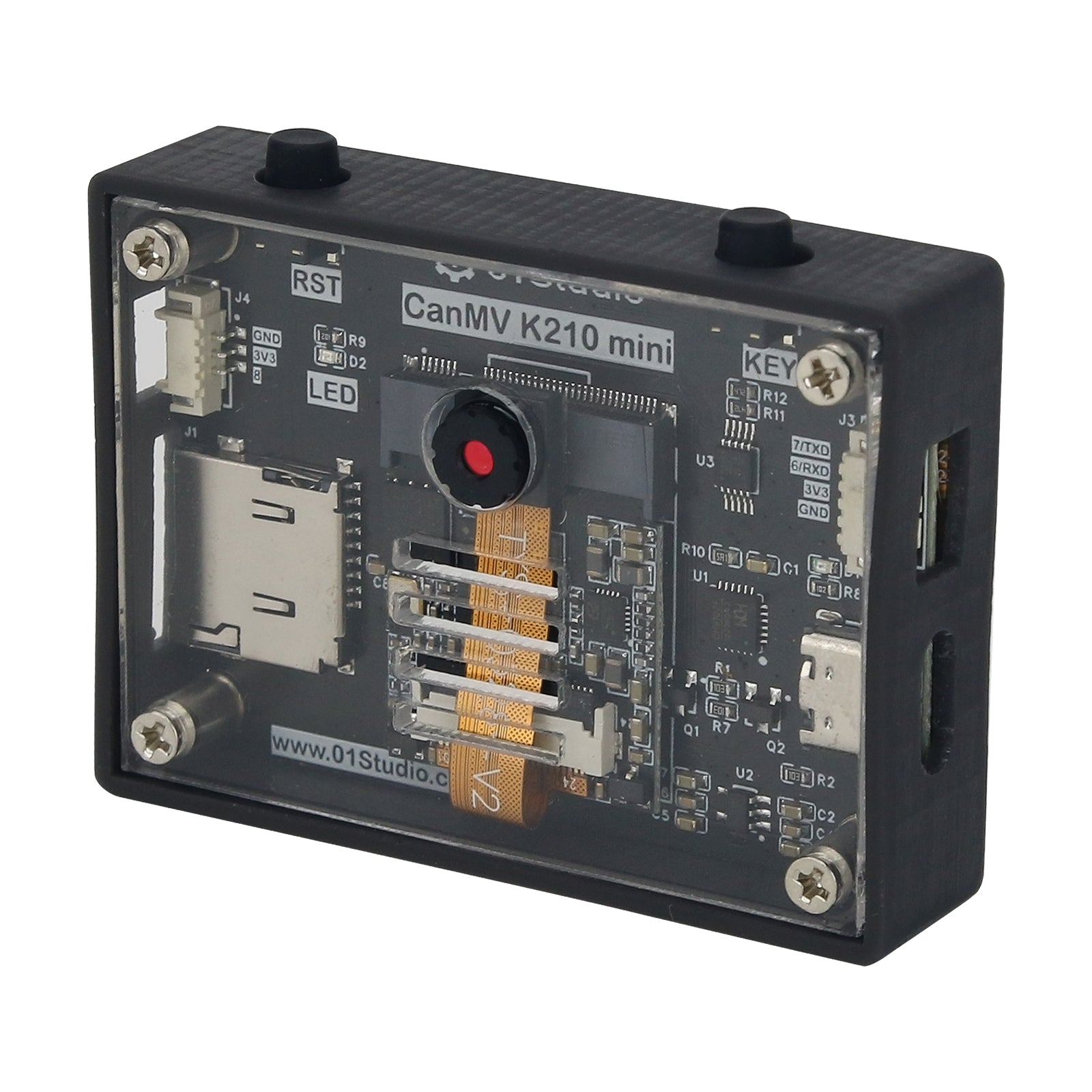 - Summary: The CanMV K210 mini is compact and easy to deploy to devices such as small cars and robots. It has a higher cost performance ratio and is suitable for pure visual application development. It can communicate with other MCUs through serial port. The appearance is a frosted shell and + acrylic protective plate.