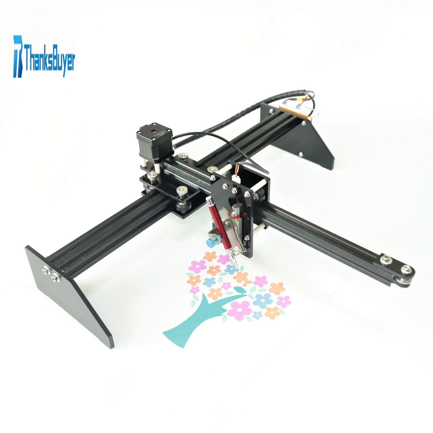 The drawing machine is design to serve a wide variety of everyday and specialized drawing and writing needs. It is an extremely versatile machine. You can use it for almost any task that might normally be carried out with a hand-held pen. It can draw the pictures with many different colors. Good for making the posters. And it does so with precision approaching that of a skilled artist, just like you are owning an arm that never gets tired.