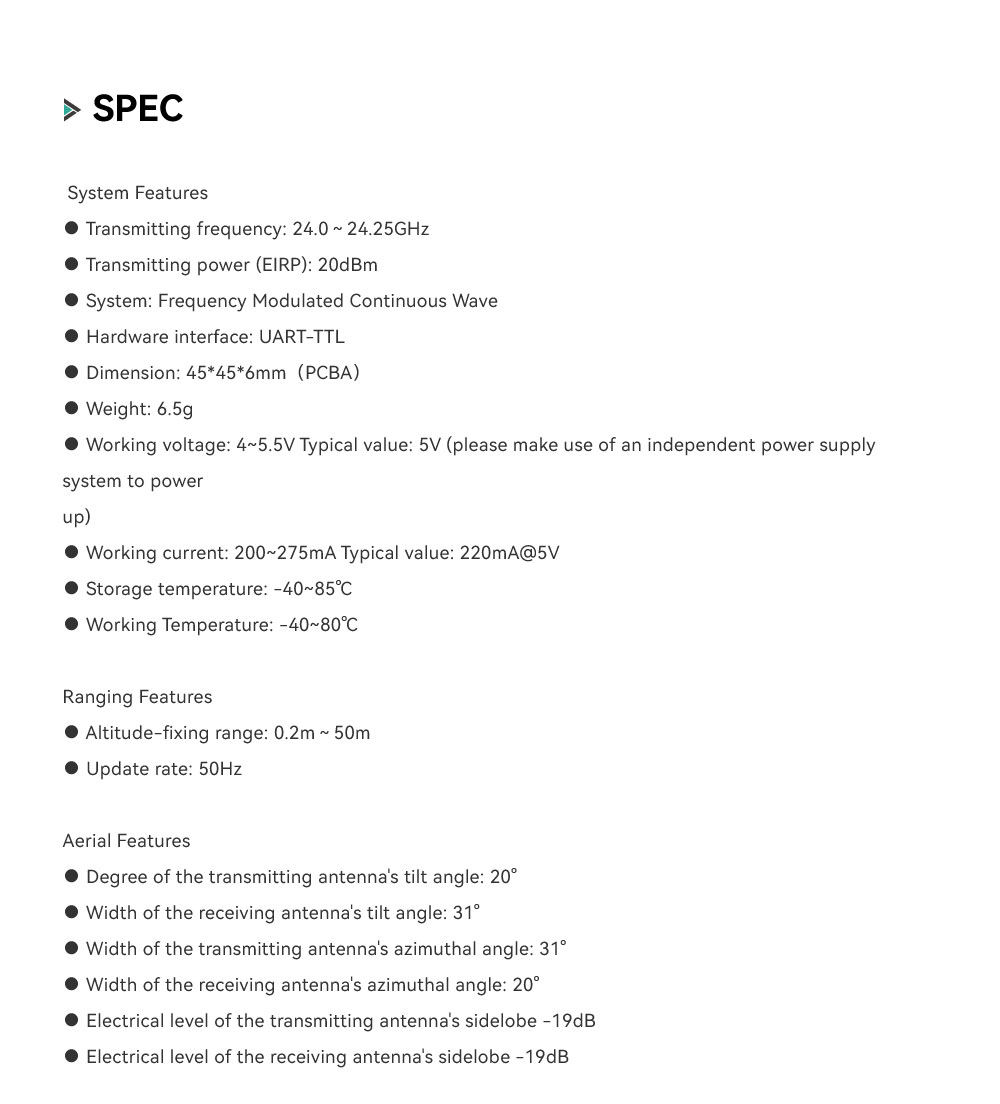 CUAV 50M/164FT Millimeter Wave Radar Sensor 50Hz UAV Obstacle-Avoidance Radar Altimeter ISTRA24