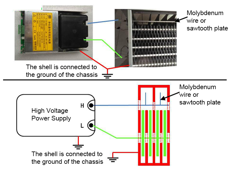 It has dual voltage output (single output can be used): high voltage output 8KV-16KV adjustable and low voltage output 4KV-8KV adjustable. It also has open-circuit (no load) protection, short-circuit protection, arc extinguishing, over-current and over-voltage protection. It can also be connected to an external indicator light. It can be widely used in purification projects such as dust, smoke, oil mist, acid mist, coal dust, benzene, formaldehyde, and oil fume purification.