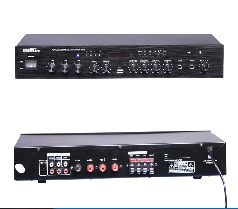 D19 60W Professional Constant Voltage Audio Power Amplifier 3-Distribution Adjustable Independent Volume