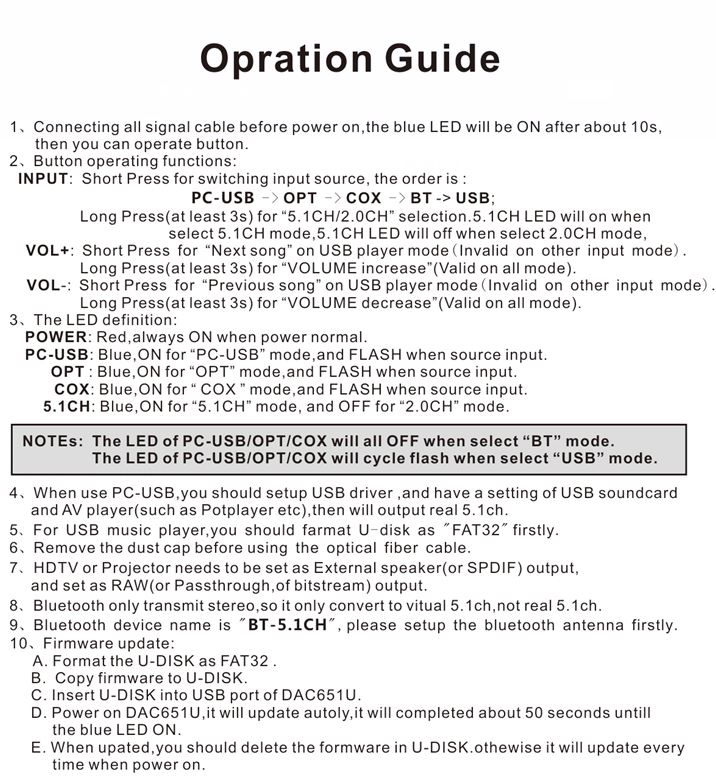 DAC651U 5.1 Audio Decoder Bluetooth 5.0 Receiver With USB Sound Card Support U Disk Music Playing