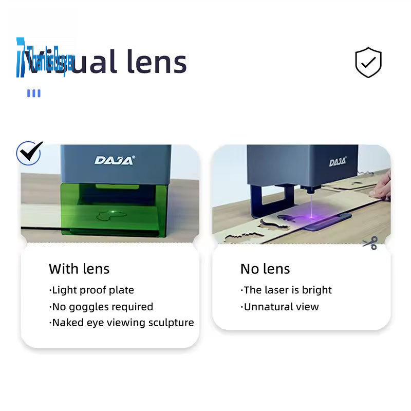 - Visual lens: The separated lens can be used as goggles, so that users can see with the naked eye, and it is convenient to observe the progress of engraving at any time