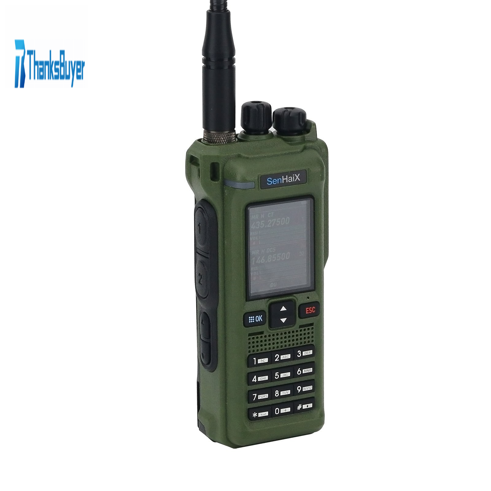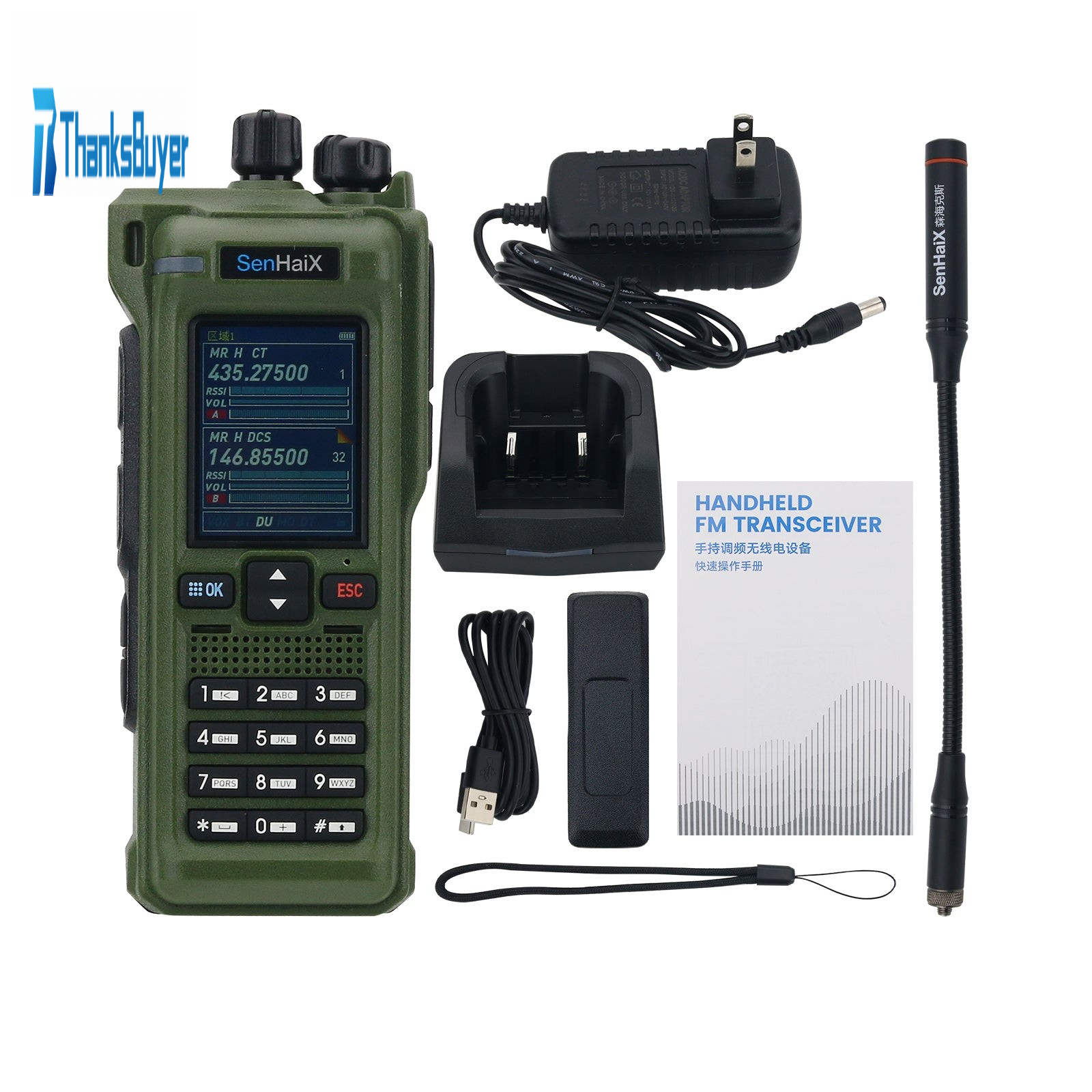 Dark Green GT-12 10W Multi-band Handheld Walkie Talkie 2-Inch LED Color Screen Built-in Bluetooth Support FM/AM/UHF/VHF