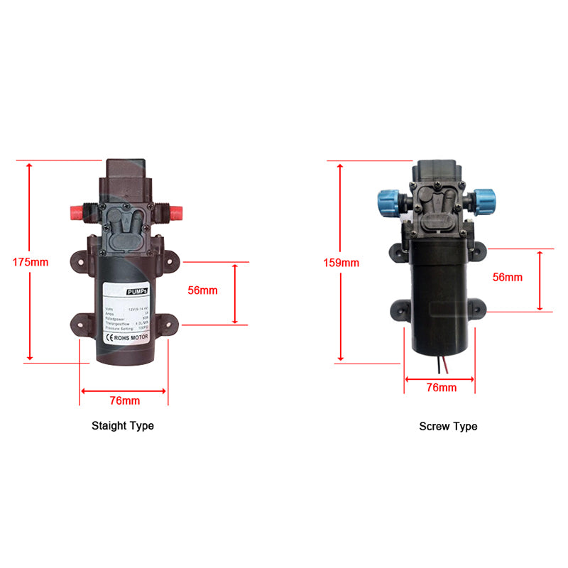 DC12V 60W High Pressure Water Pump 1.0MPa Micro Electric Diaphragm Pump 80W Large Flow Self-Priming Pump-Staight Type