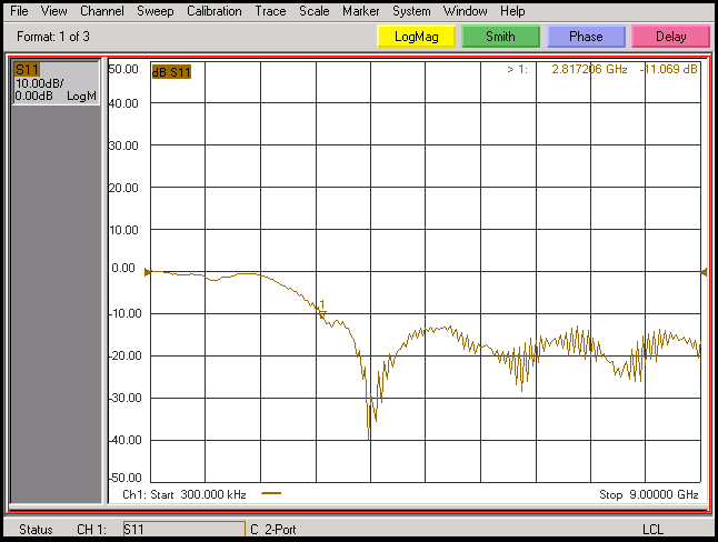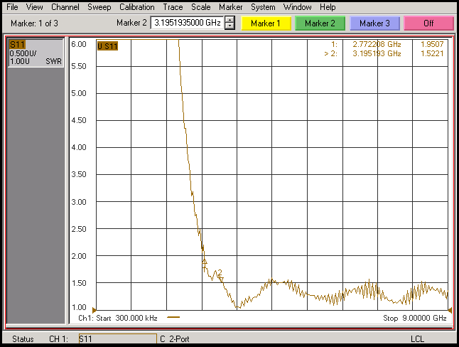 Standing wave ratio: typical value 1.5 (2.8GHz-11GHz less than 2)